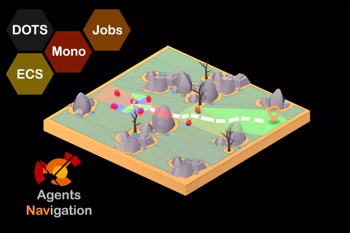 This package includes high performance, modular and scalable navigation for agents. It is developed with DOTS in mind. As a result, it takes advantage of Unity’s latest technology stack, like SIMD mathematics, Jobs, Burst compiler and EntityComponentSystem. Additionally, there is hybrid mode support that enables using it with GameObjects in Object Oriented Programming.