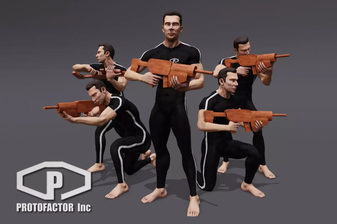 This animset currently includes 180+ humanoid motion captured animations (50+ being root motion variations): walk, run, crouch, take cover, shoot, throw grenades, get hit, death and more…