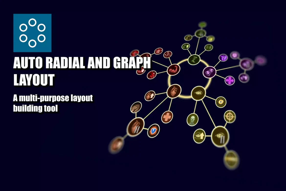 With Auto Radial Layout, designing simple or intricate radial and graph layouts has never been easier. Simply drop the Radial Layout prefab onto your canvas, and use the intuitive inspector buttons to add or remove nodes. The plugin takes care of the rest, automatically positioning your nodes to create visually appealing layouts.