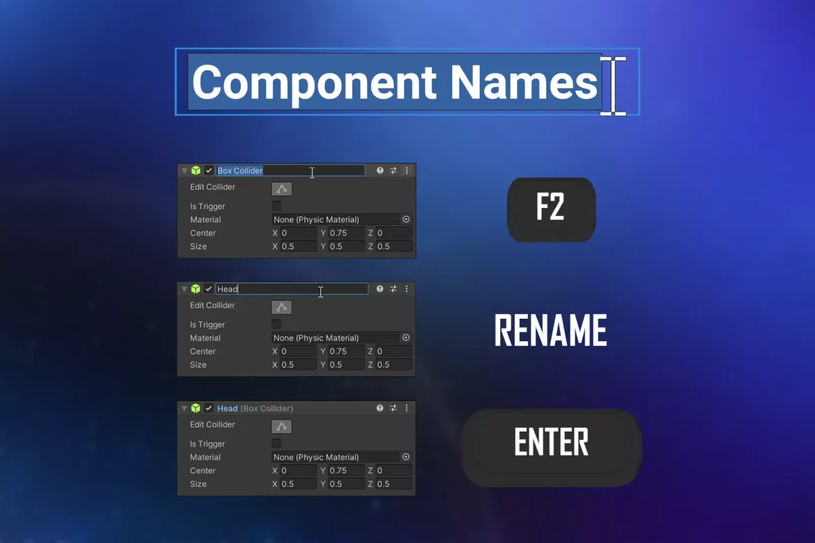 Component Names integrates seamlessly with the Inspector and makes it possible to rename components.