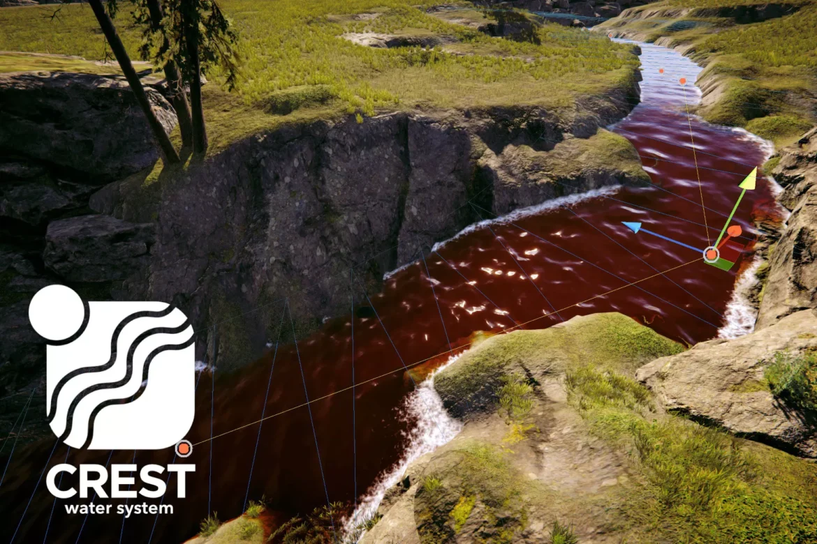 The Splines package brings splines to Crest 5. They can control waves, water level, flow and foam. Popular use cases for splines are streams and shorelines, but they can be used for much more.