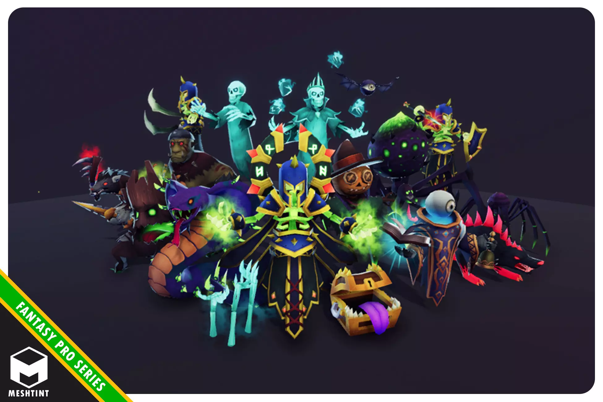 This pack contains 17 creatures. Each of them comes in different colours. They are all rigged and animated. Scroll down for more info on each creature.