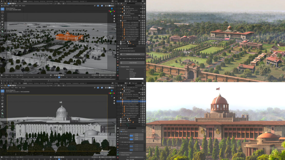 In the Komaram Bheem song sequence, all exterior Scott’s Palace scenes –basically all street shots outside the palace gates including side streets– were created in Blender.